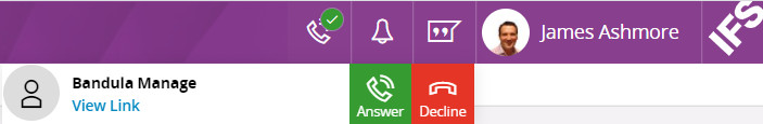 When a Call is made the User will be notified in a pop-up as shown below in IFS Cloud Web and IFS Cloud Mobile.