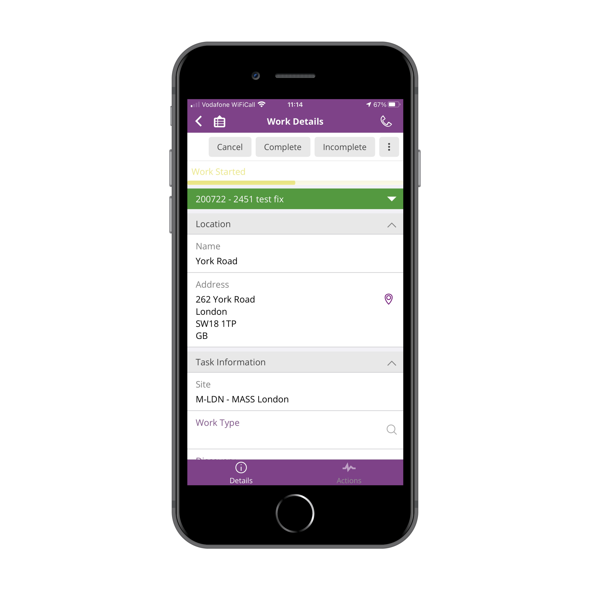 Once the User is registered as a Remote Assistance User the call option will appear in the menu bar in IFS Cloud Web and IFS Cloud Mobile apps that are built for Remote Assistance use (such as MWO Service and MWO Maintenance).