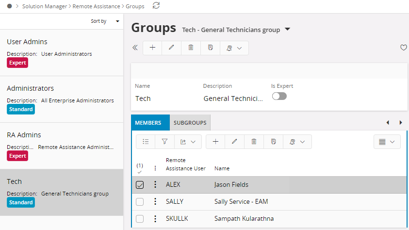 User section allows you to enable/disable IFS users for Remote Assistance Service and Groups to arrange them in a logical structure.
