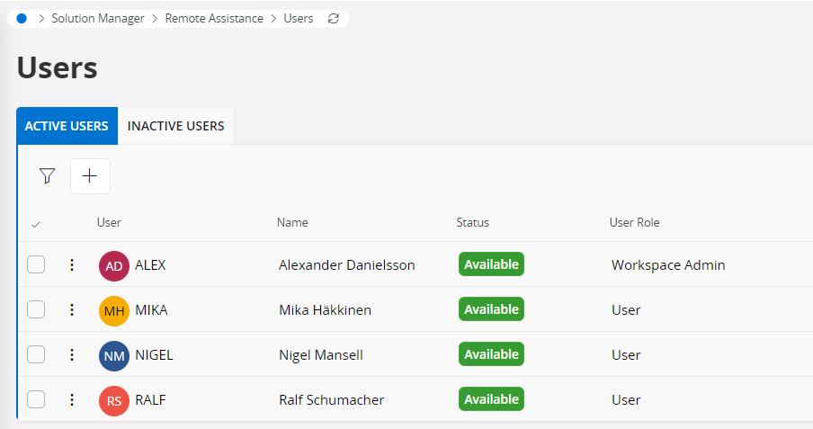 Use the (+) to enable IFS Users for Remote Assistance Service. The user role for the Remote Assistance user can be set as either Workspace Admin or User.