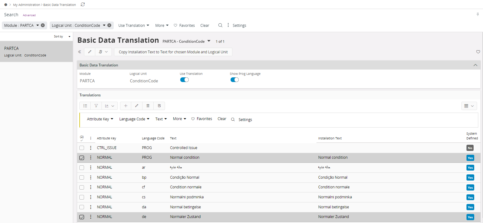 When basic data is entered into IFS Cloud, the texts might need to be shown in different languages. For system defined texts (texts added in the core product) that are visible to the users this is always true. For text entered in a specific installation this depends on if it is needed to be translated into different languages or not.