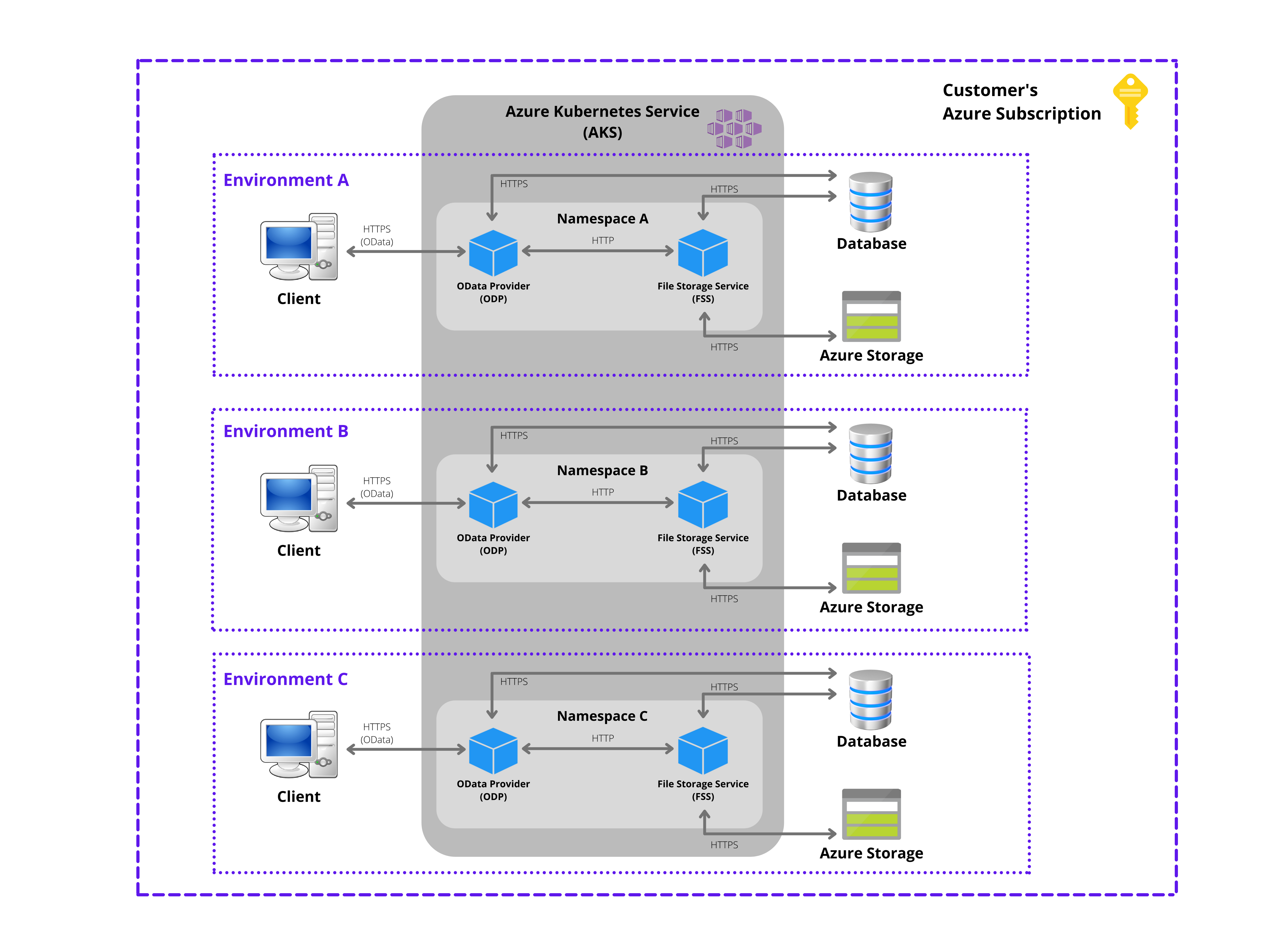 A storage account is provisioned automatically per environment. Access to the storage account is only allowed from the middle-tier related to the environment.