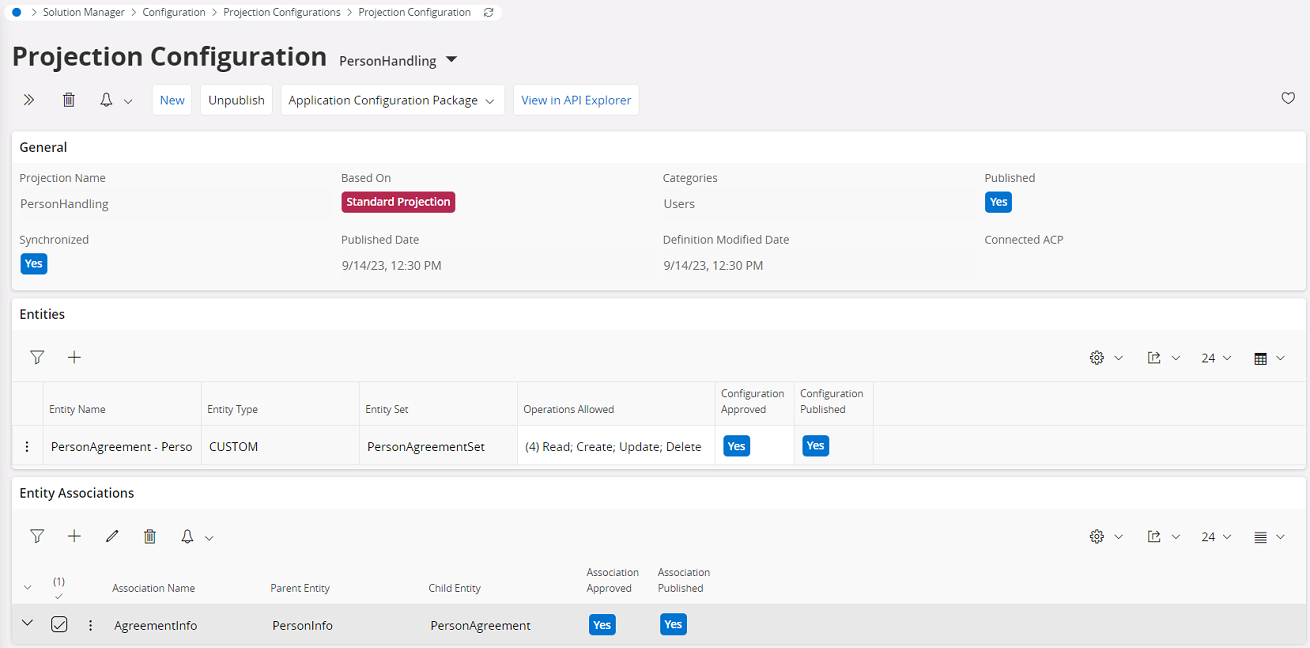- Make sure to use an Association Name that indicates the relationship of the association. Parent entity should be the Entity related to the Standard page that is being configured (PersonInfo). Child entity will be the Entity that has been created as a Custom Entity. It is possible to set any Standard, Custom or Query Entity as the Parent or Child, as long as they are added under Entities list.