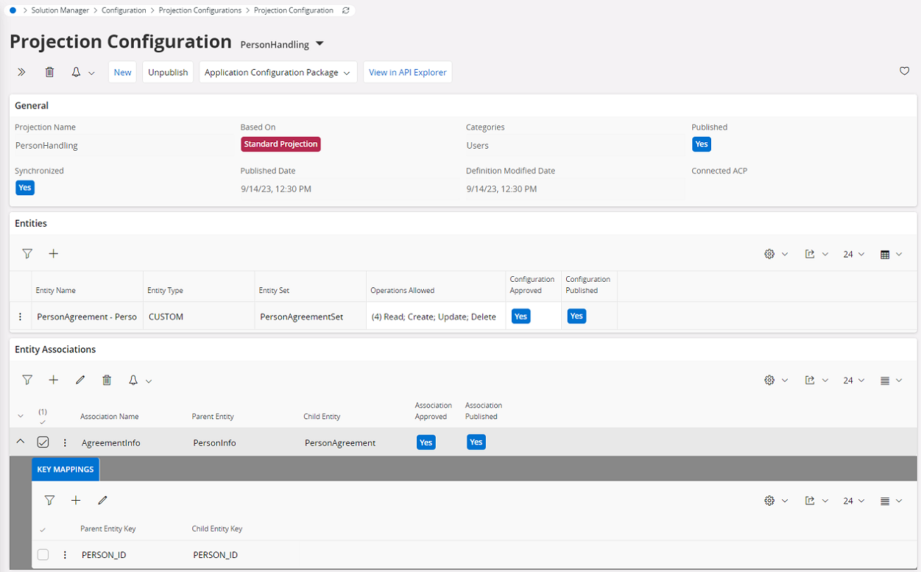 - Then add the Entity Association Key Mappings. Click the Plus icon under “Entity Association Key Mappings”. For the “Parent Entity Key” choose the required key from the standard page and for the “Child Entity Key” choose the required key from the Custom Entity.