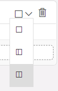 The layout of a group can be changed when you click the square dropdown icon next to the delete icon. In here the dropdown icon will give 3 layout options.