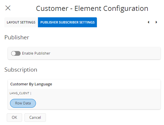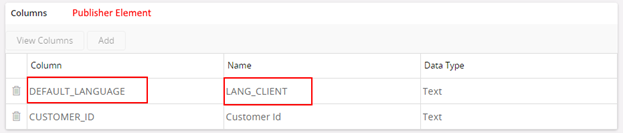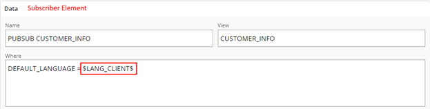 According to the above example LANG_CLIENT (alias) is the relevant publisher column name (DEFAULT_LANGUAGE can also be used). Once subscriber element is configured as above $LANG_CLIENT$ is considered as a page parameter.