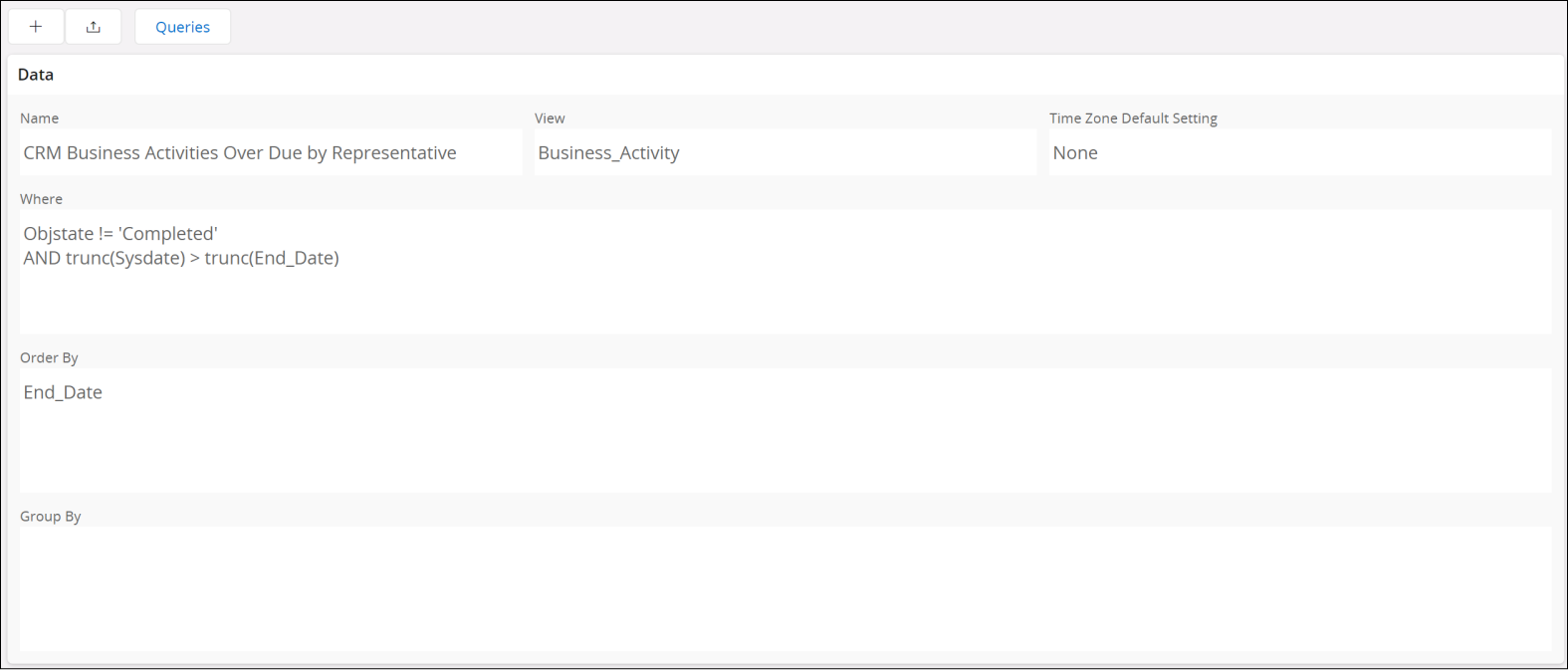Order By | The column to be used to order the data |