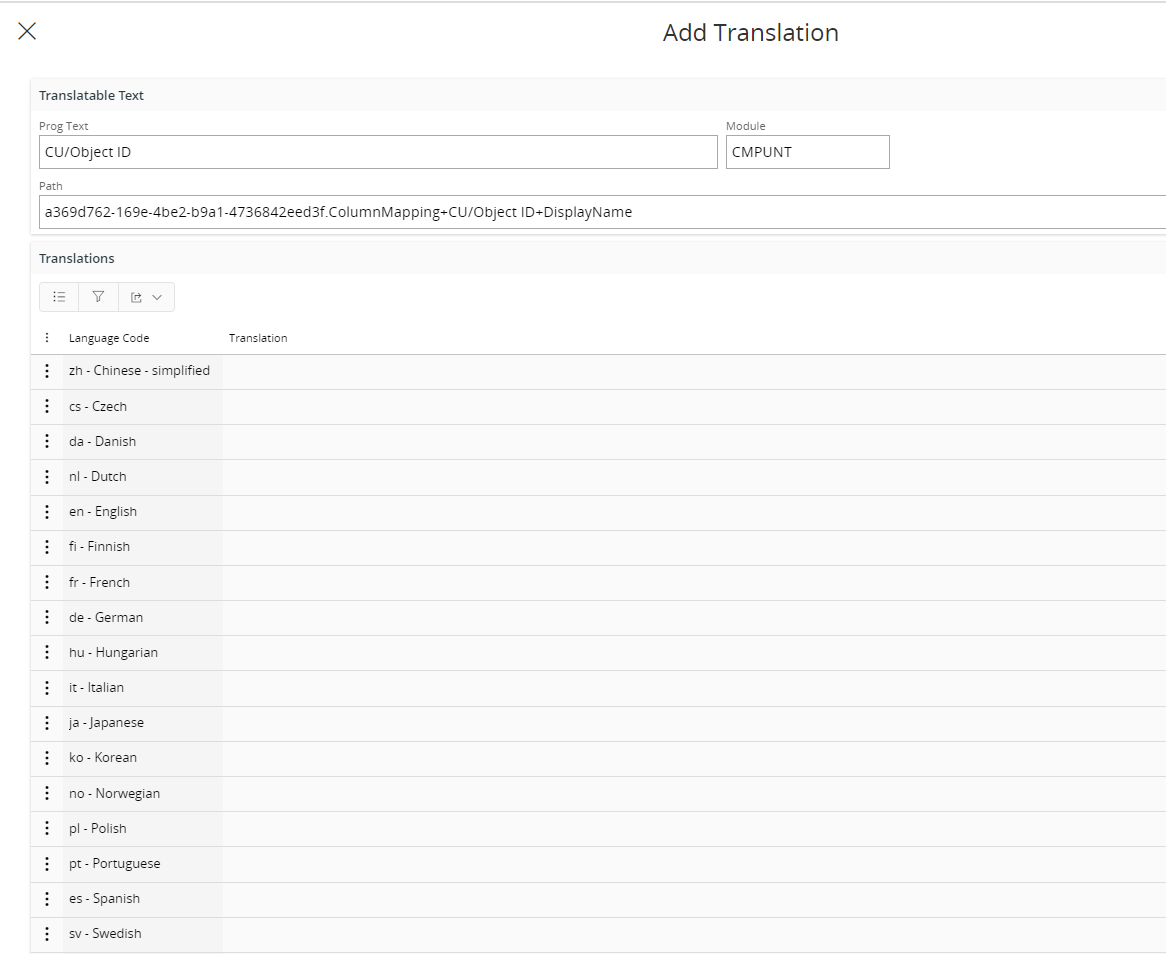 Type the translations for chosen languages in 'Add Translation' dialog and press 'OK' button