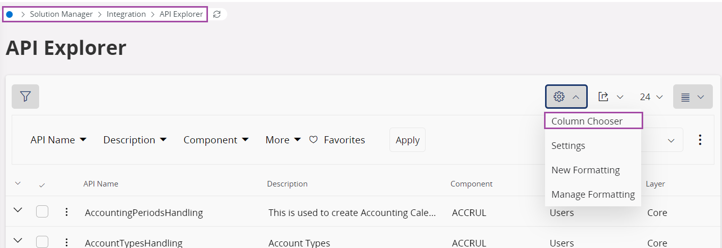In IFS Cloud, navigate to Solution Manager > Integration > API Explorer.