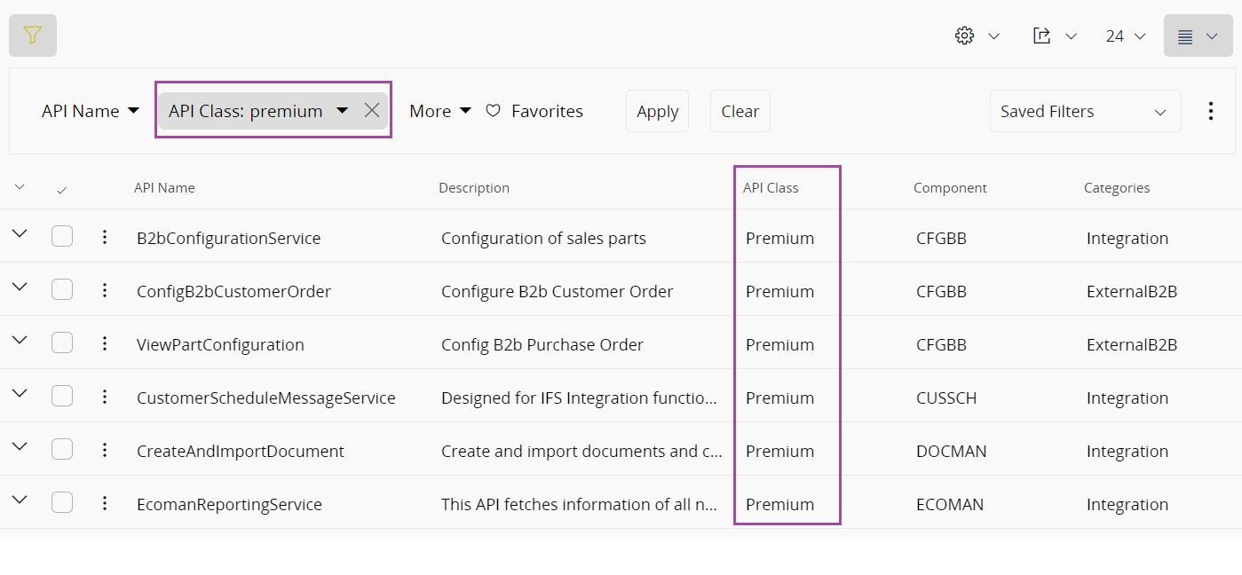 In order to filter the Premium APIs, choose API Class as a field from the list of columns and enter premium as the filter value.