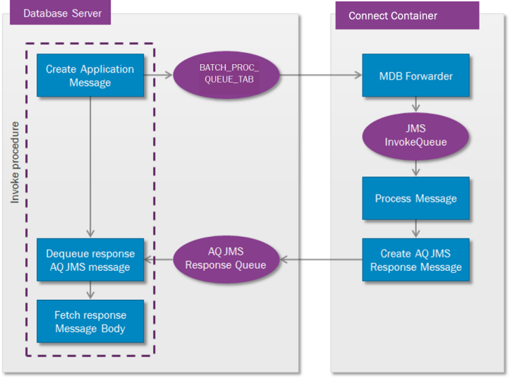 1. The Invoke procedure creates an Application Message with incoming data in the Message Body and saves it. This is done in a separate (autonomous) transaction. The message is tagged so it can be distinguished from other messages by Message Processor.