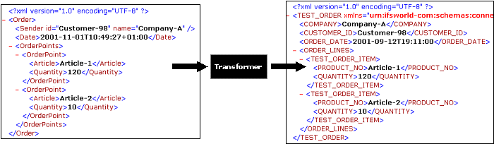 Transformers support conversion of IFS Record XML format to/from other formats required by other systems - like other XML standards, flat files, or HTML. IFS Connect supports transformation of both inbound and outbound messages. Synchronous request/response messages may also have transformation of the response.