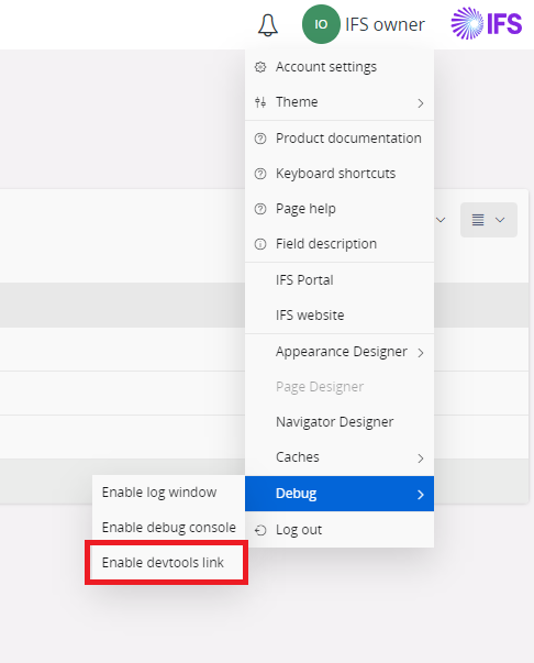 To enable the trace log details users need to enable the devtools link in the IFS Cloud Web.