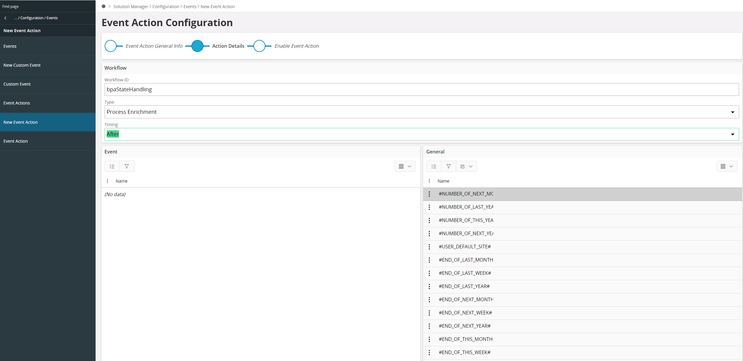 - Event Action: ProcessKey, ProcessType, ProcessTiming, LU Name, EventId