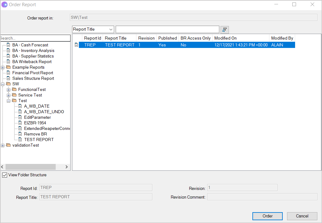 A report is often designed to use parameters, making the report more generic. For each execution, the necessary parameters are displayed and should thus be provided by the end user before the execution is started. A report can be executed from IFS Business Reporter but a more general approach is to publish the report to IFS Cloud and use ordinary reporting order interfaces to execute the report. An advantage with this approach is that a report can be scheduled and for every execution a mail with or without the final report can be sent to a specific user. The standard IFS reporting functionality also enables distribution of executed reports to many users and also to connect an executed report to a document in Document Management.