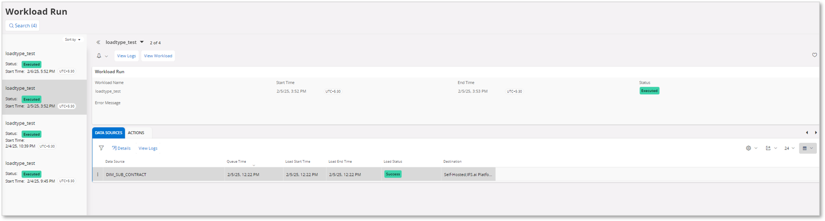 - Once that process is completed, Workload Run is updated with the relevant statuses/ details.