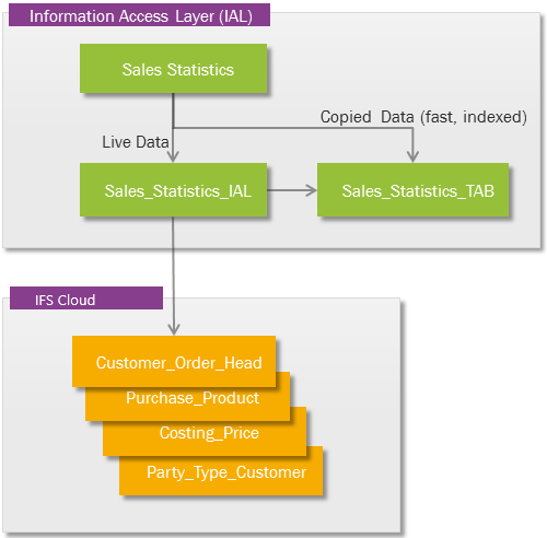 IAL objects are implemented as database views in Oracle. An IAL object can optionally be accompanied with a table, which can be used to store a copy of the data in the IAL object for high-speed access.