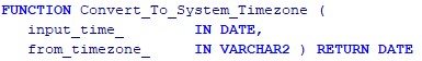 Converts a date in a given time zone (from_timezone_) to the time zone the database is running (NOTE: This is the time zone of the Database Server and not the DBTIMEZONE value).