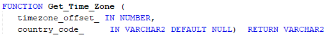 This function takes in the UTC Offset as a parameter and optionally the country code, and returns a time zone that corresponds to the provided offset. If a country code is specified, the function retrieves the time zone that matches both the offset and the country. Time zones are ordered alphabetically, and in case of multiple matches, the function returns the one that appears first when sorted alphabetically.