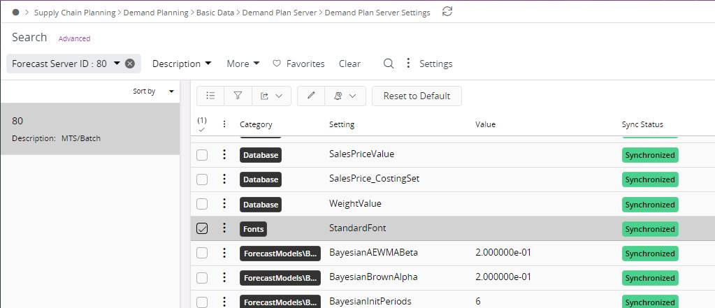 For double languages like Japanese, the fonts used in the demand plan server must be changed from something other than the default fonts. These fonts are changed from the registry. Here is the list over font name entries in the Server.
