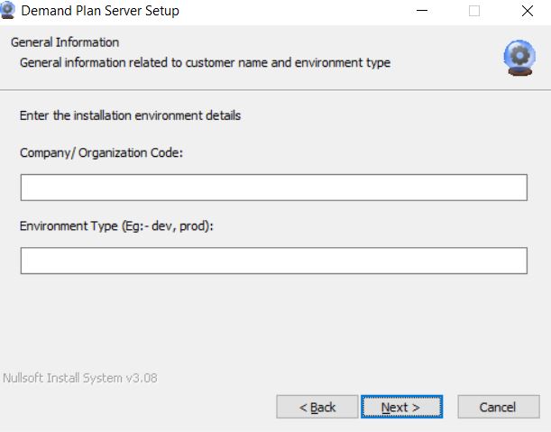 4. ./dmsetup -action Install -customerCode <Customer code to identify the customer> -environmenttype <Customer Environment type to identify the environment of the customer> -Appowner <Database Appowner> -Connection <Database Connection> -UserName <Database Username> -Password <Database Password> [ This will install the Demand Plan Server after updating the Settings.json file in the default location(if not specified with -configPath) with the values given with the command. If no values are given, the Settings.json file will not be changed. It is possible to provide values only for the parameters that need to be updated and the rest of the parameters will remain unchanged.]