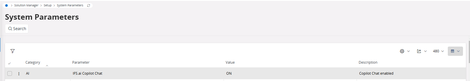 - The system parameter IFS.ai Copilot Chat needs to be ON (ON is the default value).