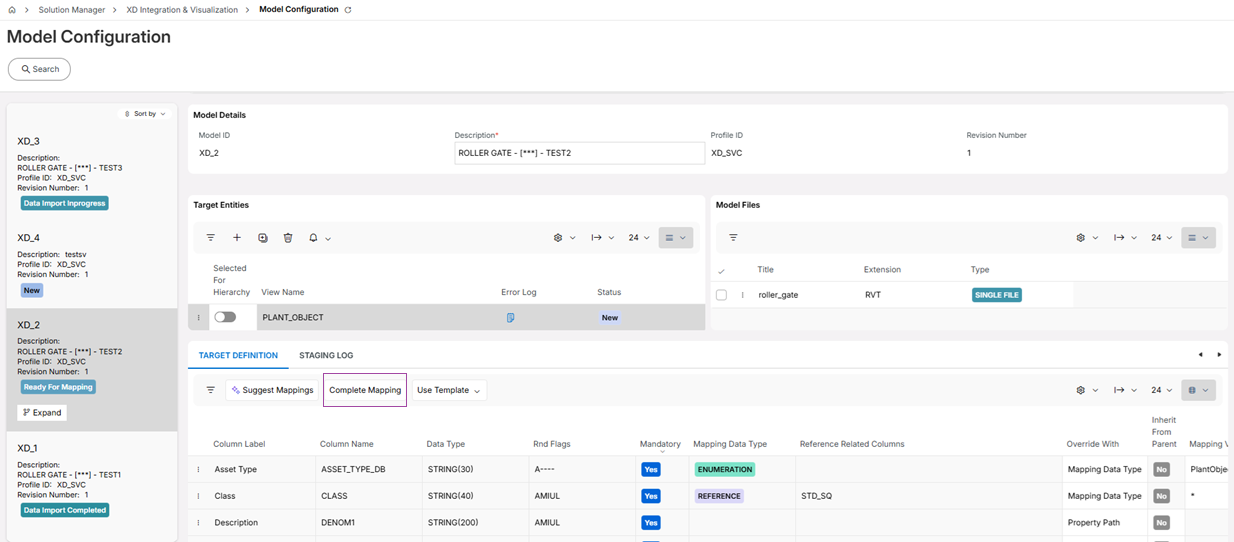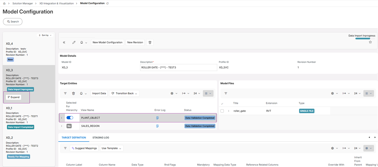 Navigate to Solution Manager > XD Integration & Visualization > Model Configuration.