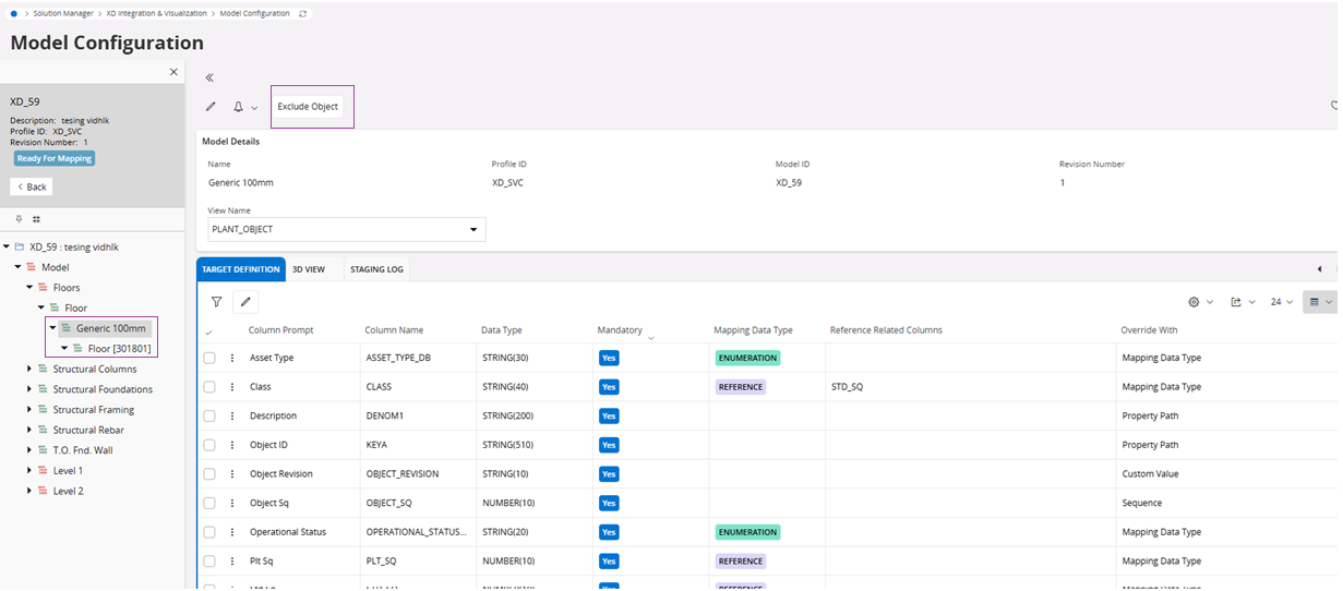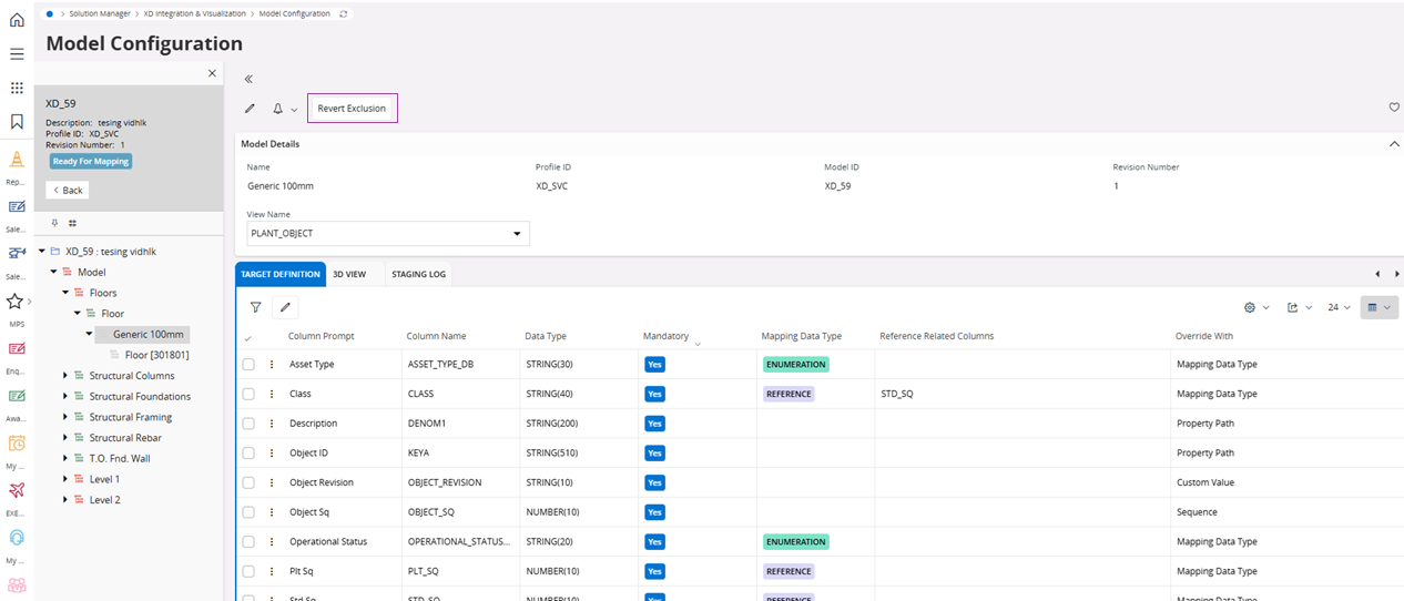 Once you choose the target view, you can view the related objects in a hierarchical tree structure on the left panel by clicking on Expand. This represents all the objects related to the model with their parent-child associations.