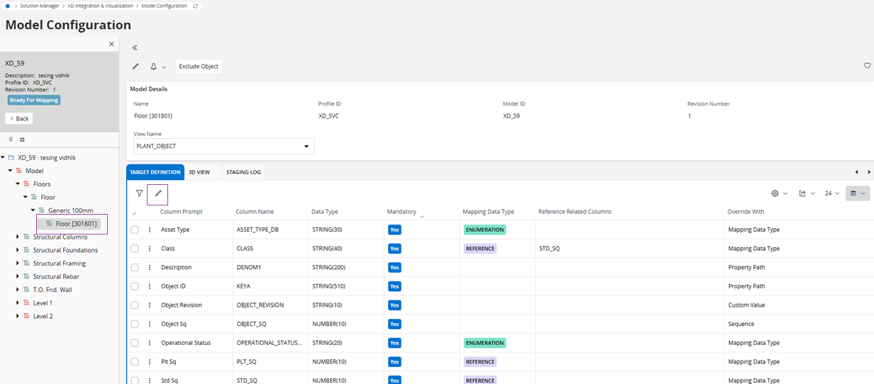 You can also edit mappings in the Target Definition column with the property values relevant to that particular object by clicking on the edit icon as shown below. This option applies when the property values of the objects differ from those of the root node.