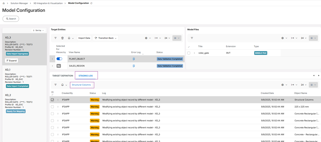 By selecting a record and clicking on Structural Columns, you are redirected to the related object. This is to enable easy identification of the node that is associated with the log record.