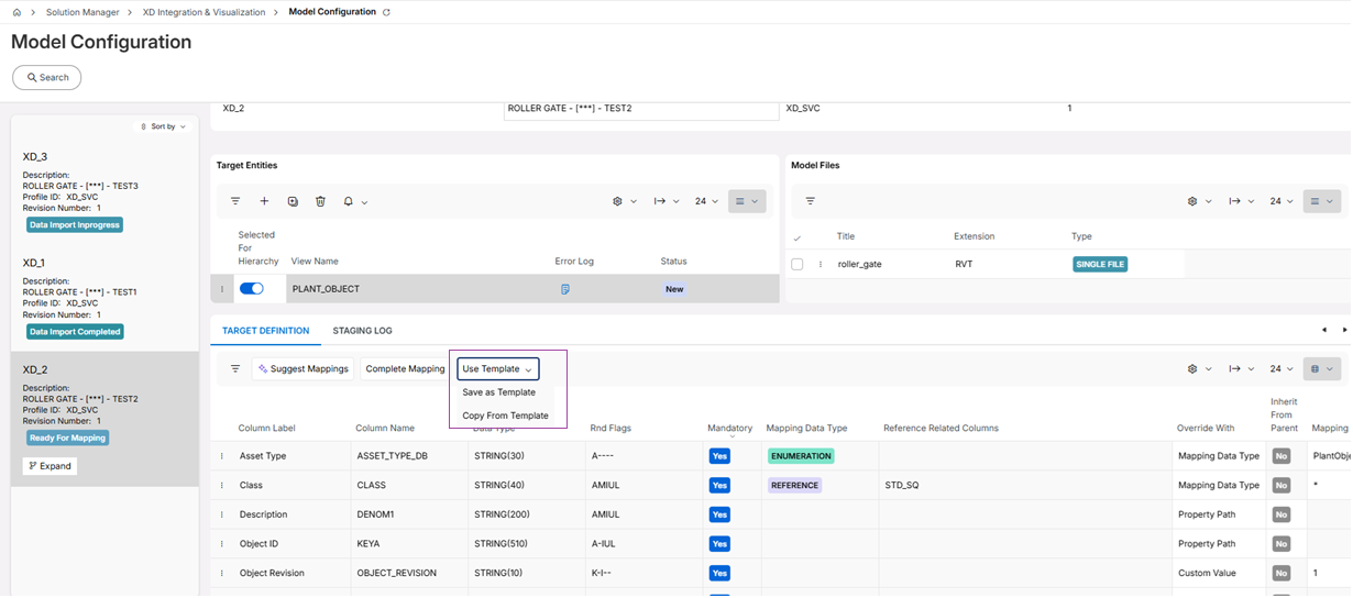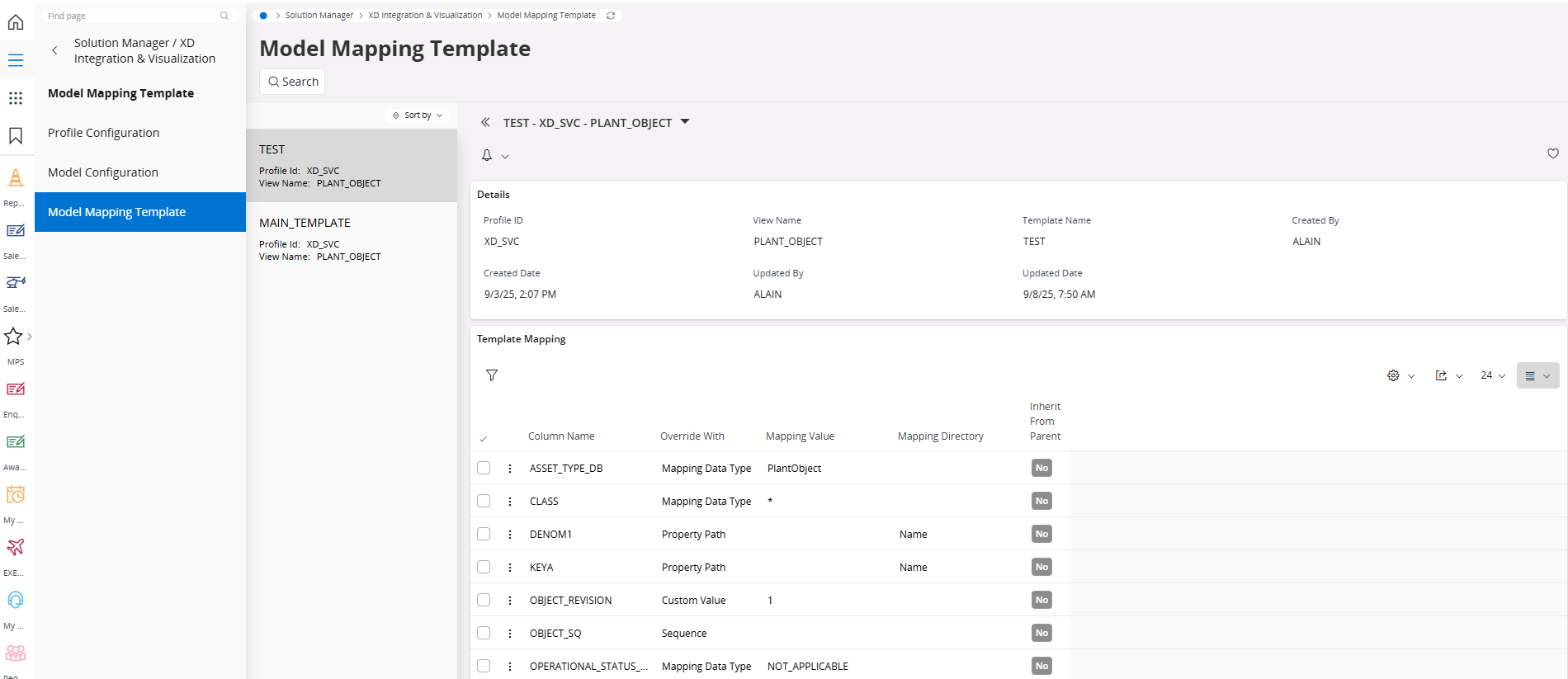 You can view your newly created or modified template in Solution Manager > XD Integration and Visualization > Model Mapping Template.