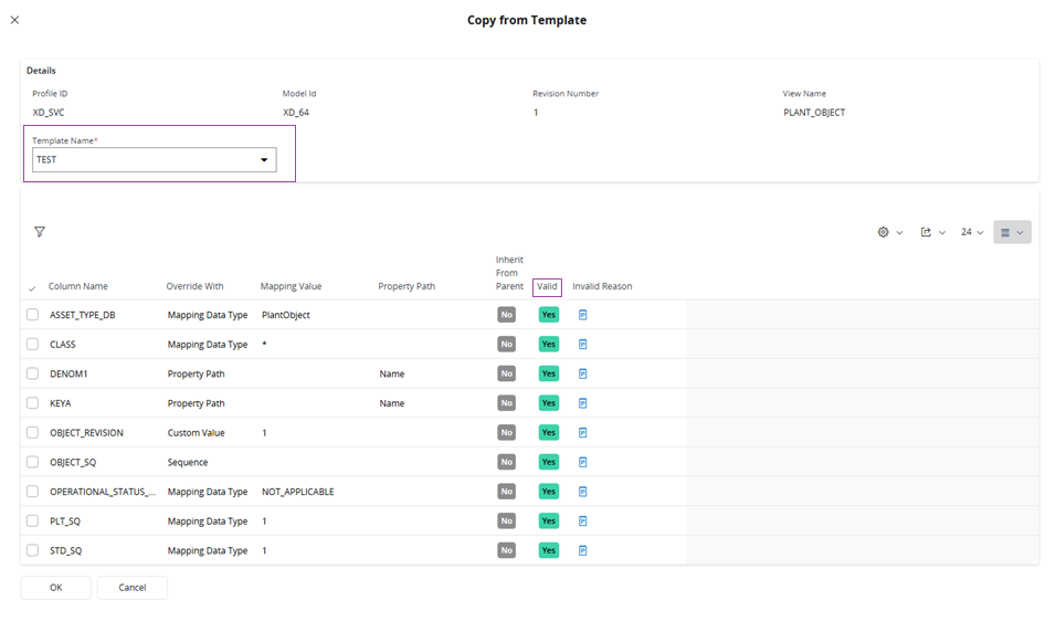 Choose a template you want to copy the mappings from in the Template Name dropdown.