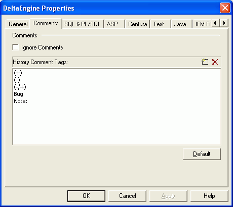 You can exclude all comments handling by checking the “Ignore Comments” option. The DeltaEngine will then ignore comments in the code as well as changes to the File Header History comments.