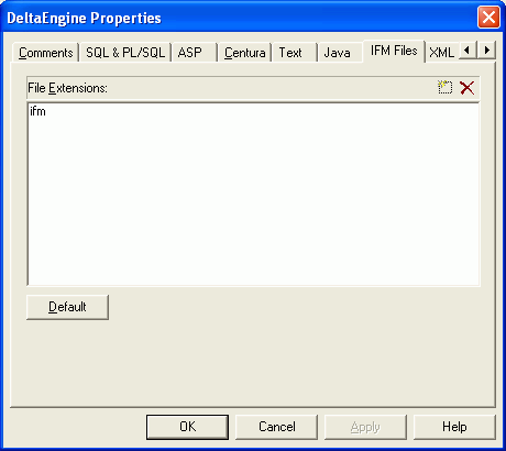 Use the IFM tab to define file extensions to be handled by the IFM parser. IFM
