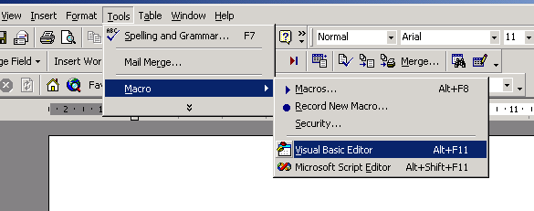 To add a Visual Basic Macro go to Tools / Macro / Visual Basic Editor