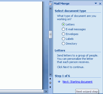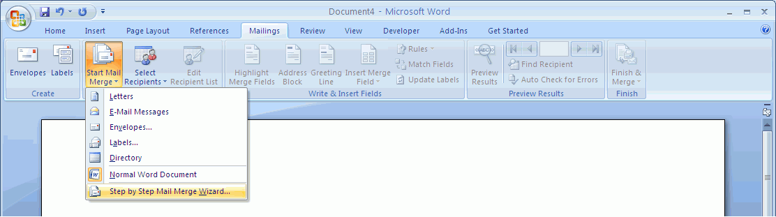 Start Microsoft Word and create a new blank Word document. Go to Mailings / Start Mail Merge.
