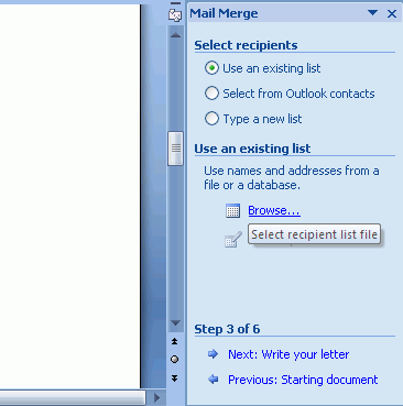 Click on Next and choose Use an existing list. Browse to employeedata.html and select that file.