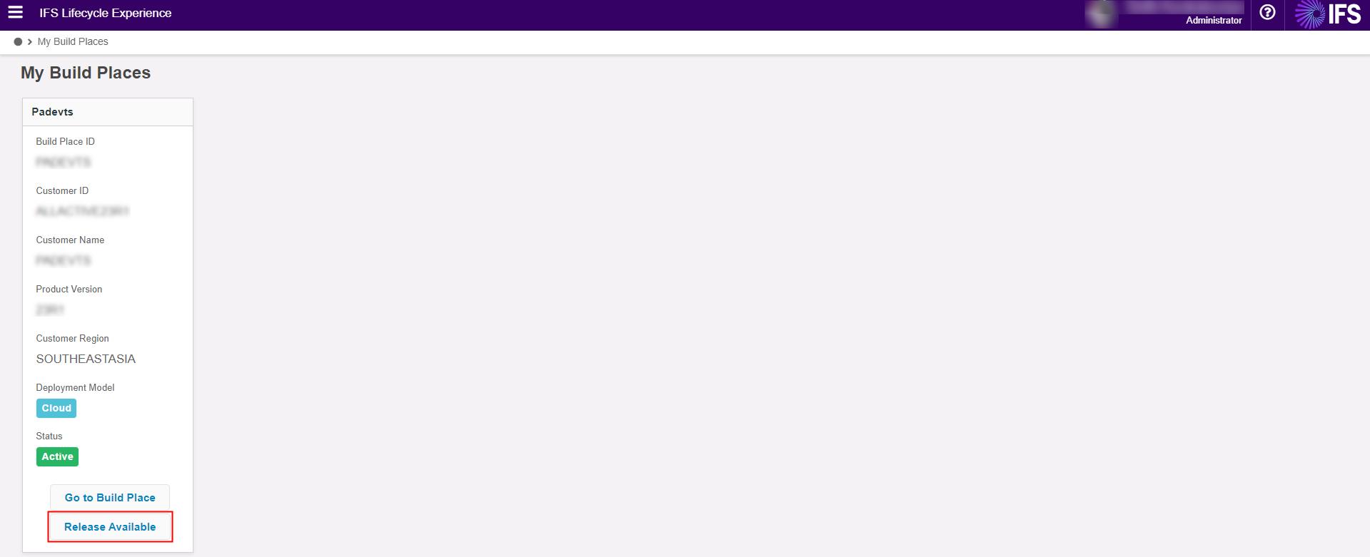 The users can log in to Release Update Studio by clicking the Release Available button on the My Build Places page, as shown below.