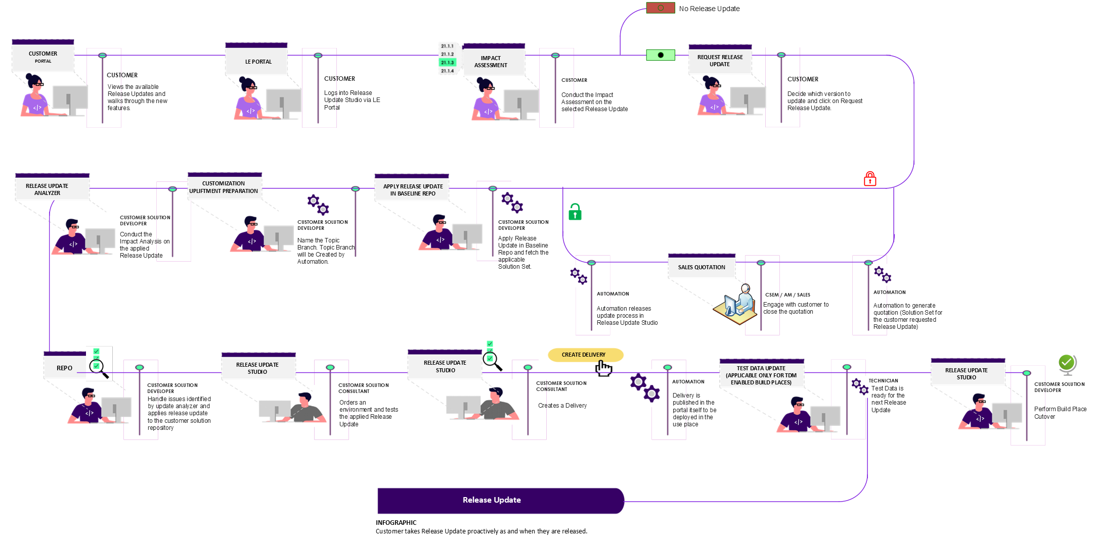 The infographic below depicts the business process of Release Update Studio.