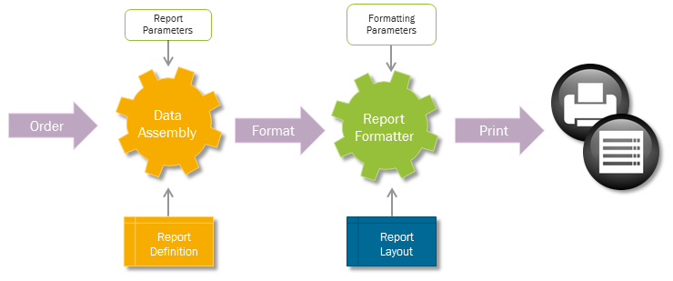 - The assembled data is formatted using a Report Formatter -