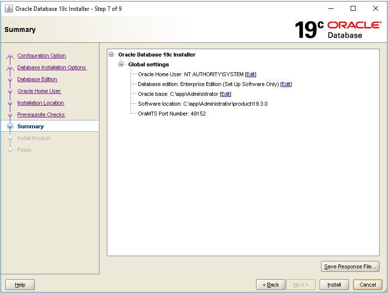 The following describes how to install Oracle Database 19c