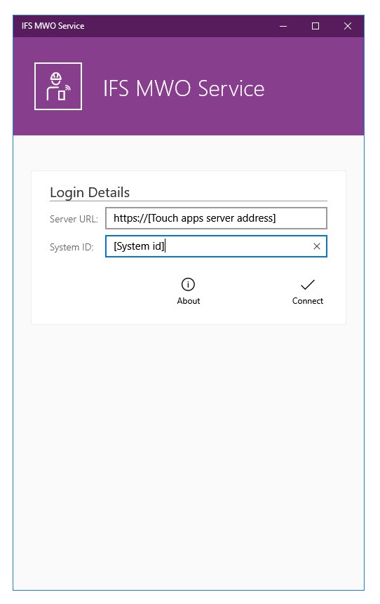 You now need to logon to the proper IFS Applications system in order to use your app, by entering the correct Server URL and System ID, and then login using your user credentials with correct User and Password. This information you should get from your system administrator.