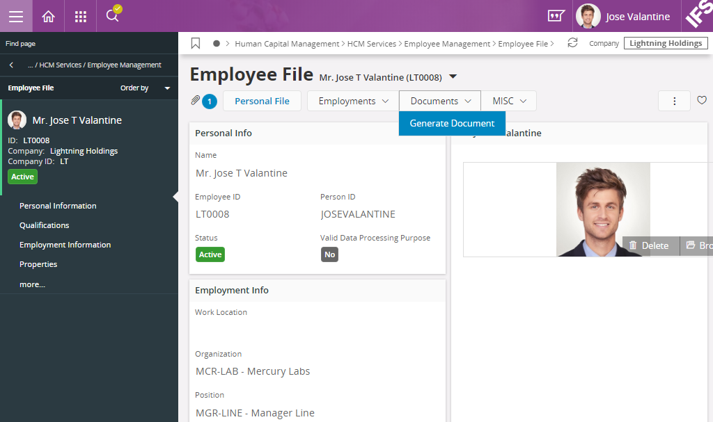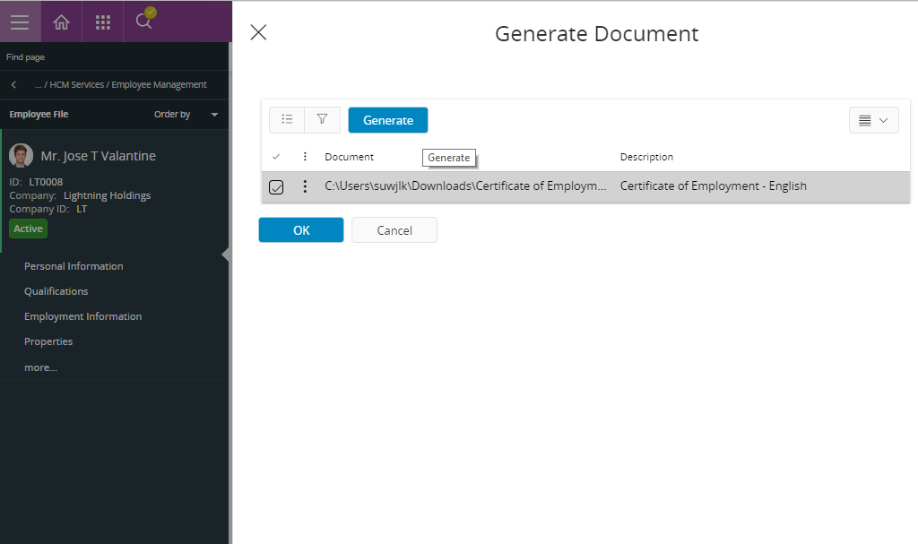 - Generate Document using Employee File page: