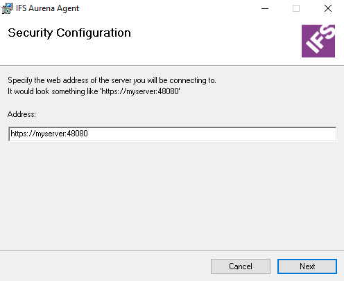 - Specify the web address of the Application Server you will be connecting to and select Next.