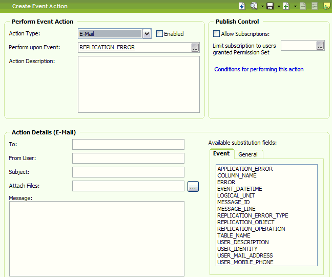There is one event 'REPLICATION ERROR" available for the replication process. You can create event actions which are triggered when a replication error occurs. See Manage Event Action how to create an event action.