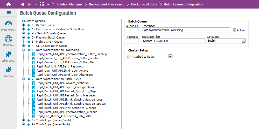 IFS Data Synchronization provides two batch queues to process background jobs related to synchronization