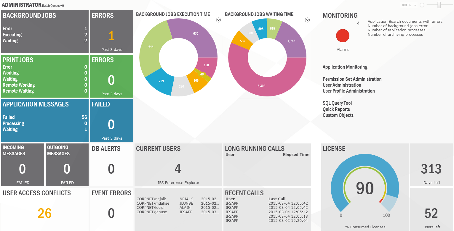 The tool is complemented by the IFS System Monitoring Console that monitors the infrastructure.