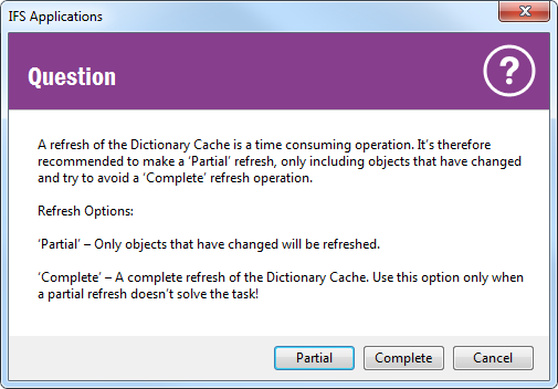 It is possible to start a Refresh of the Dictionary cache from this form.
