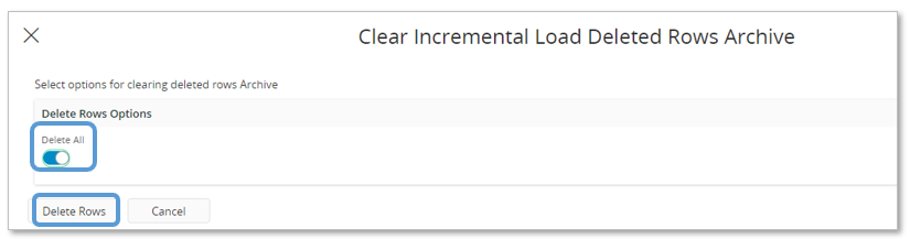 To use the second option, toggle Delete All and then click on Delete Rows.