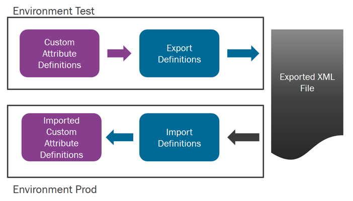 Custom attribute definitions can be exported from one environment and